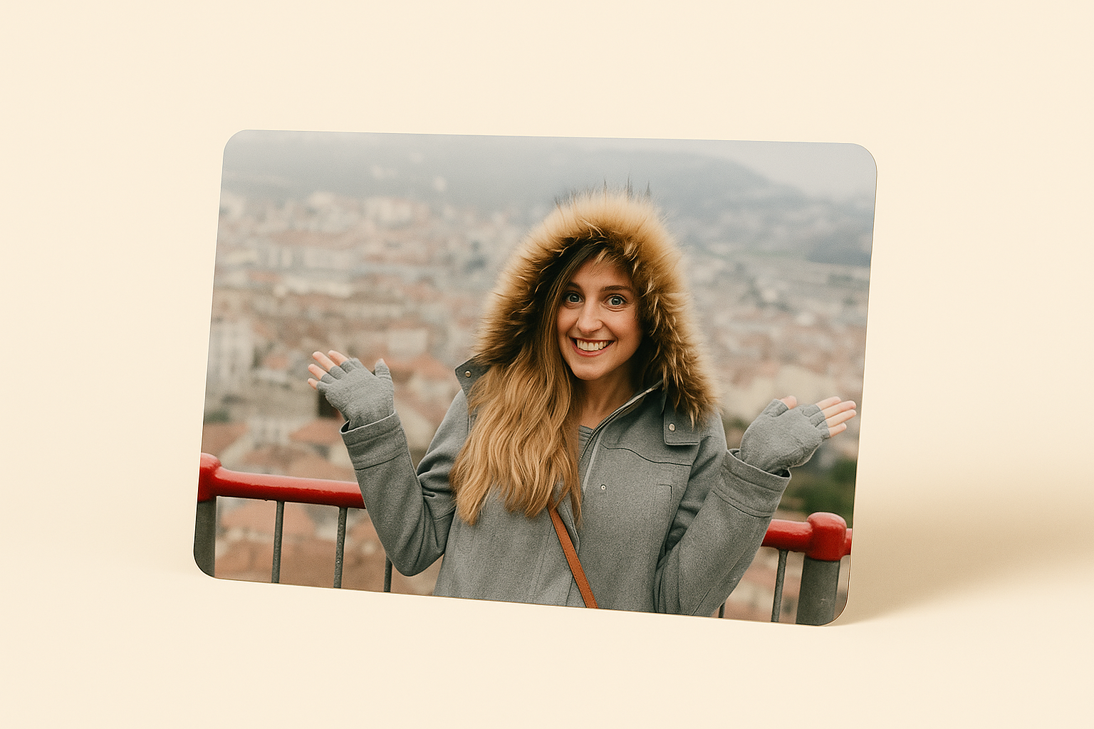 Upload a photo that means the world to you — your wedding day, your beloved pet, a once-in-a-lifetime trip — and we’ll print it on a high-quality card, designed to be kept, gifted, or displayed.
